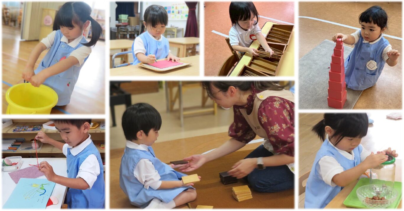 幼児教育で世界的な実績を誇るモンテッソーリ教育を取り入れ、カトリック的世界観に基づき、学校教育法に定められた保育内容(健康・人間関係・環境・言葉・表現)をより豊かに、より総合的に追求、実践します。